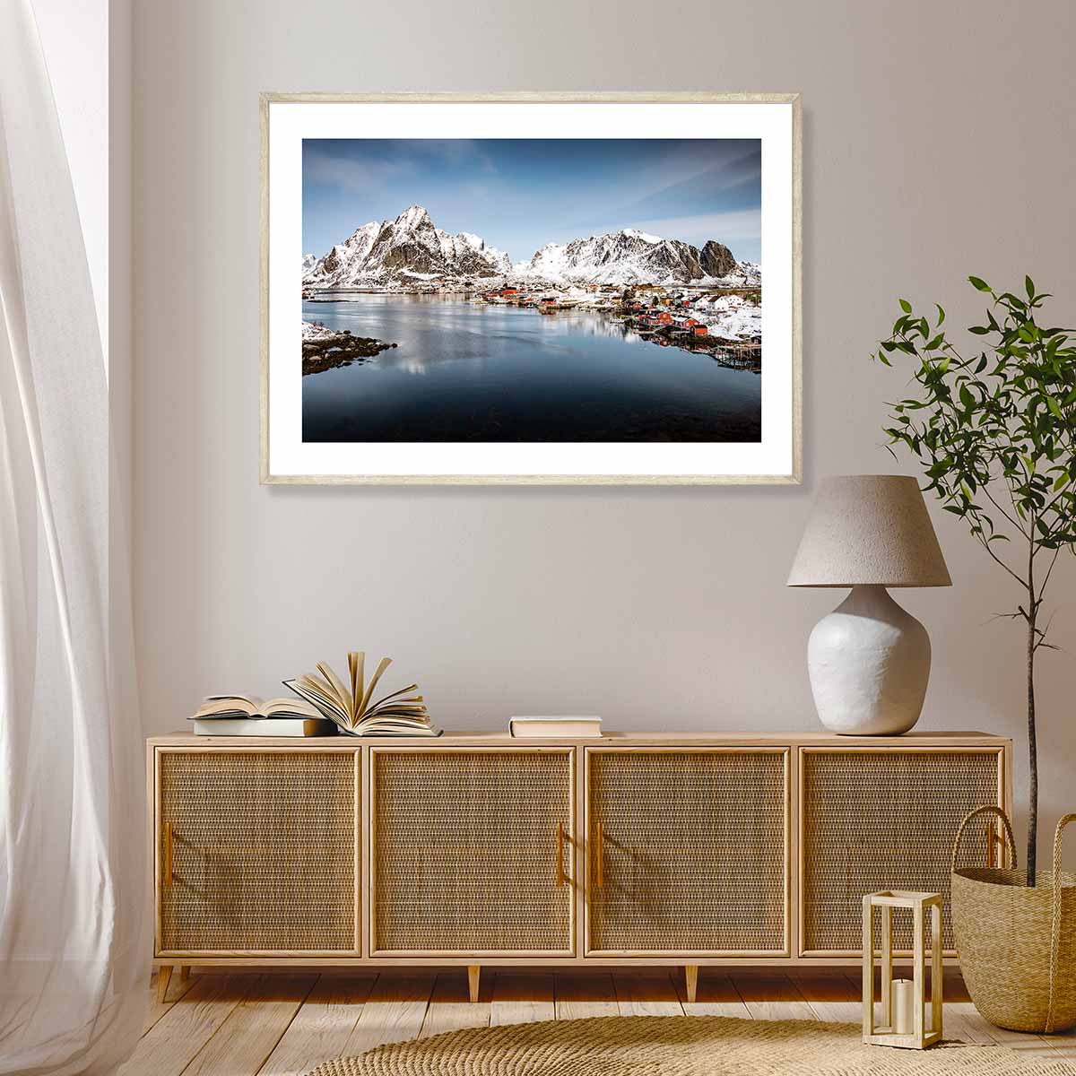 Reine is a picturesque fishing village on the Lofoten Islands, an archipelago that stretches across the turbulent waters of the Norwegian Sea. On this day we wandered high above Reine and were struck by the contrasting colours of the vista before us – the bright red of Reine’s rorbuer (fishermen’s cabins), the pure white of the snow-dusted peaks of the Lofoten Islands, and the icy blue waters of the bay. Norway, with its rugged, dramatic, remote beauty, looked spectacular.